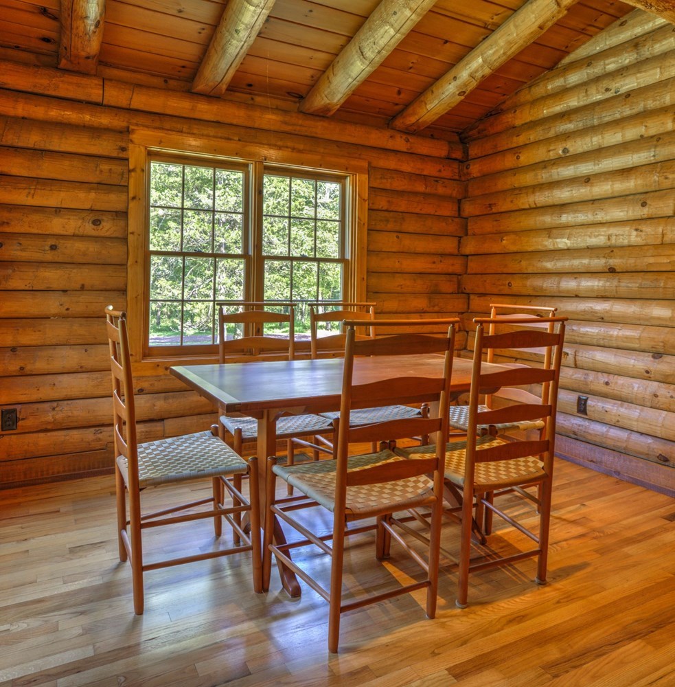 Trestle Table (Pumpkin Pie Wood) - 5 ft Length - Includes (6) Shaker Ladder Back Chairs (Tan & Brown- Tape Sheets)...excellent condition...made by Shaker Works Shop Note: PICK UP only - In Newton PA