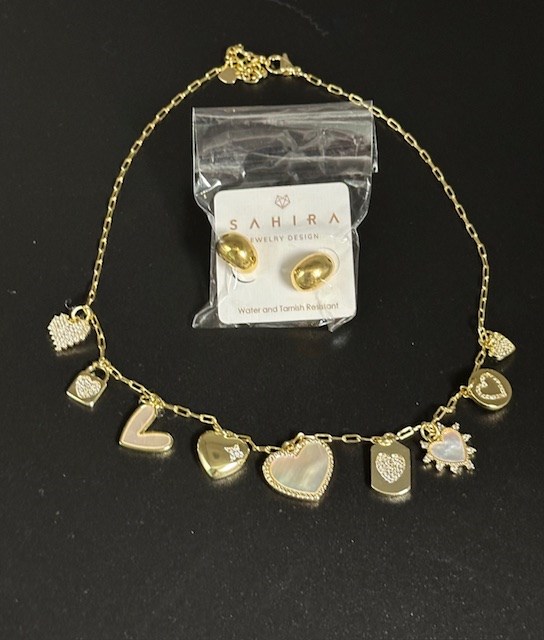 Charm Love-Themed Necklace ($56 value) and non-tarnish earrings ($40 value) generously donated by Sandra's Boutique, 180 W State St. Doylestown