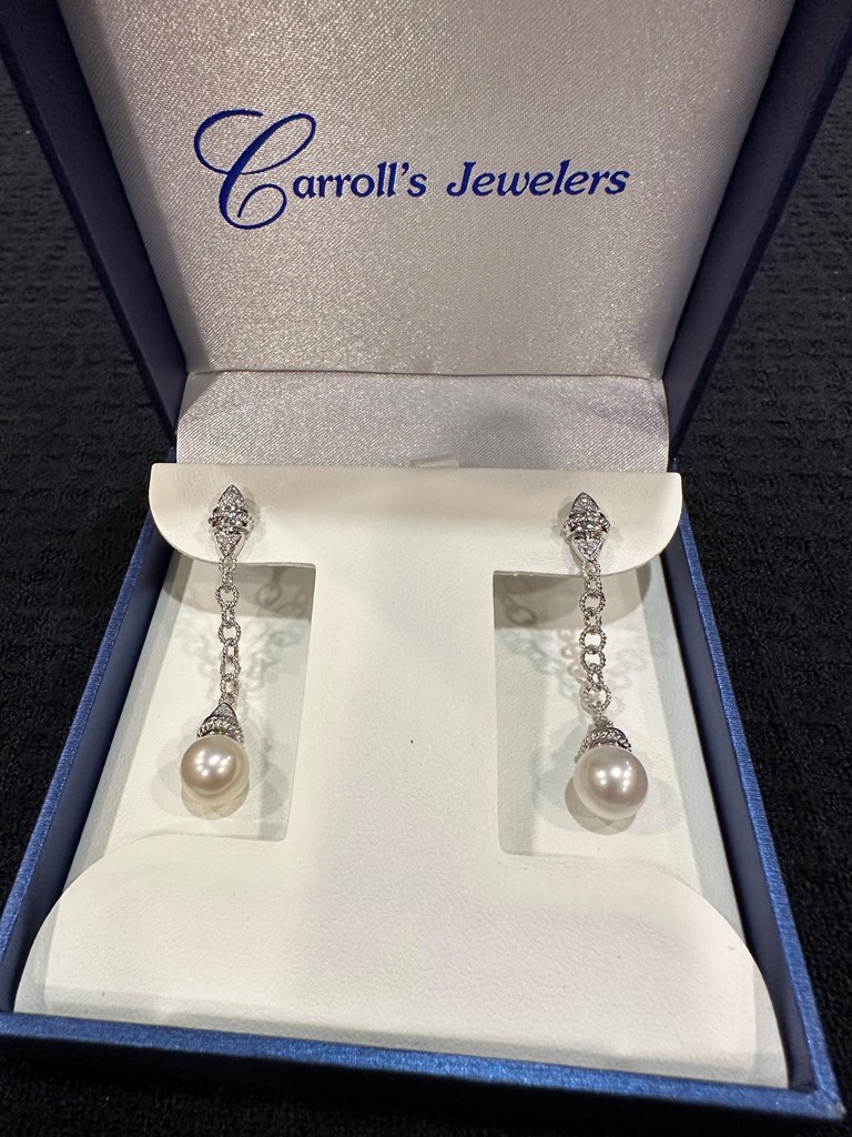 White Gold Pearl & Diamond Earrings; valued $2,270